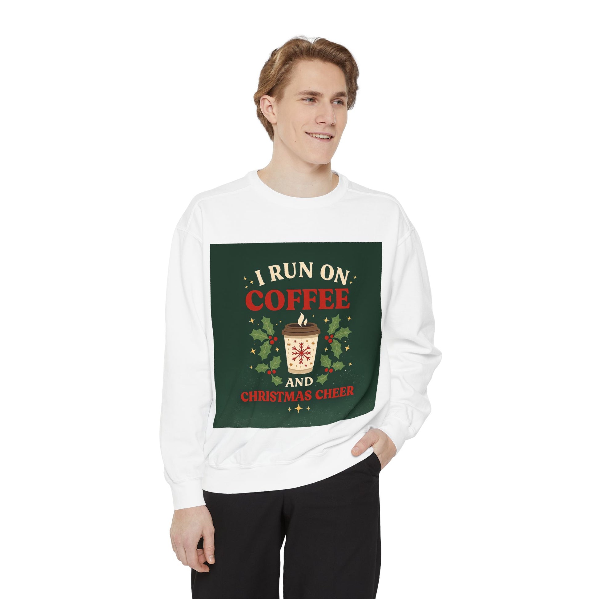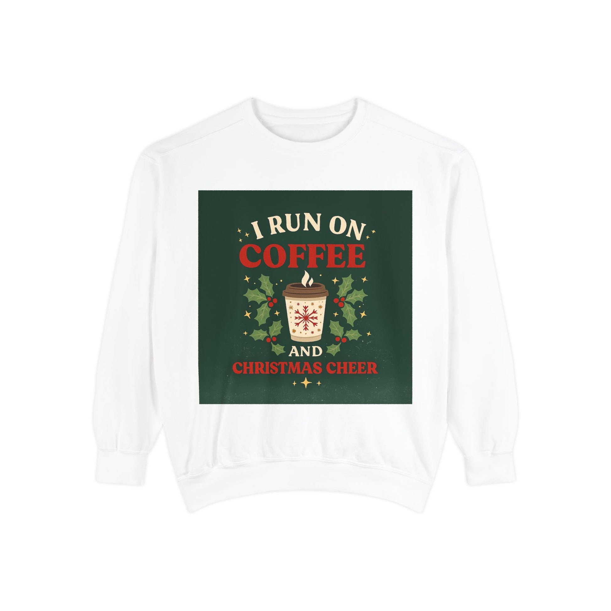 Christmas Coffee Sweatshirt - "I Run On Coffee and Christmas Cheer" Holiday Pullover