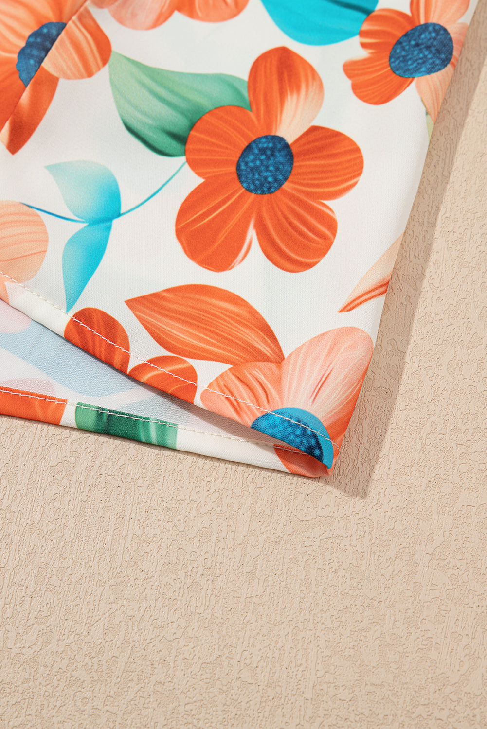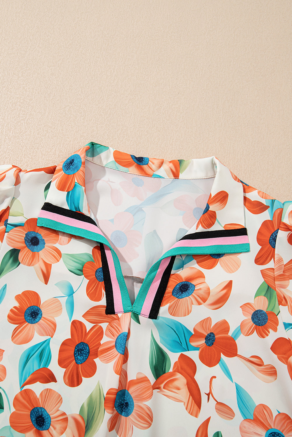 Orange Pop of Color Split Neck Puff Sleeve Floral Mini Dress
